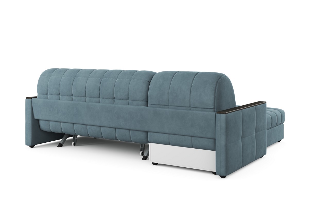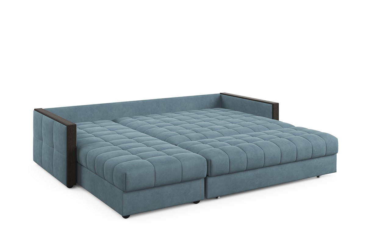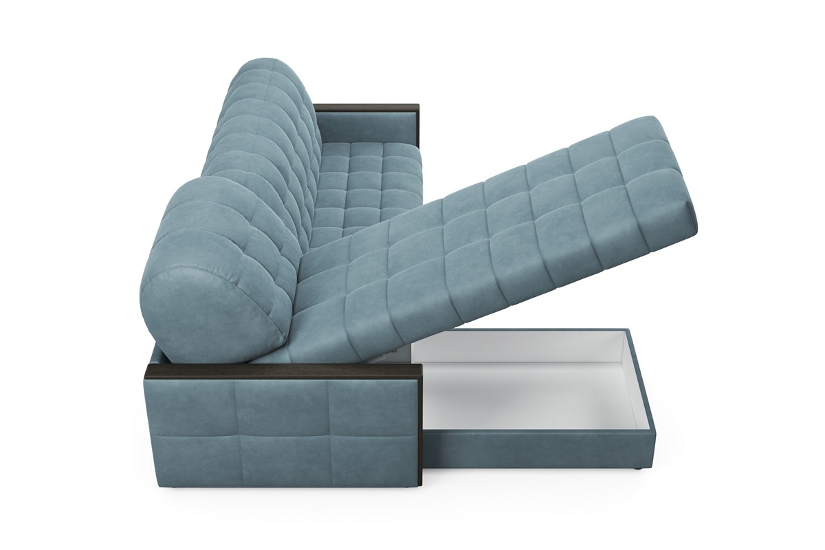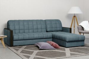 Модель углового дивана «Аккорд 5» имеет оригинальный дизайн, который совместил в себе массивную спинку и сидение с довольно тонкими строгими подлокотниками. Оригинальности дизайну придают деревянные накладки на верхней и торцевой частях подлокотника. Диван может использоваться в качестве спального места на каждый день. Трансформация происходит очень просто за счет механизма «Аккордеон». Как и в других моделях серии «Аккорд» присутствует вместительный ящик для постельного белья.