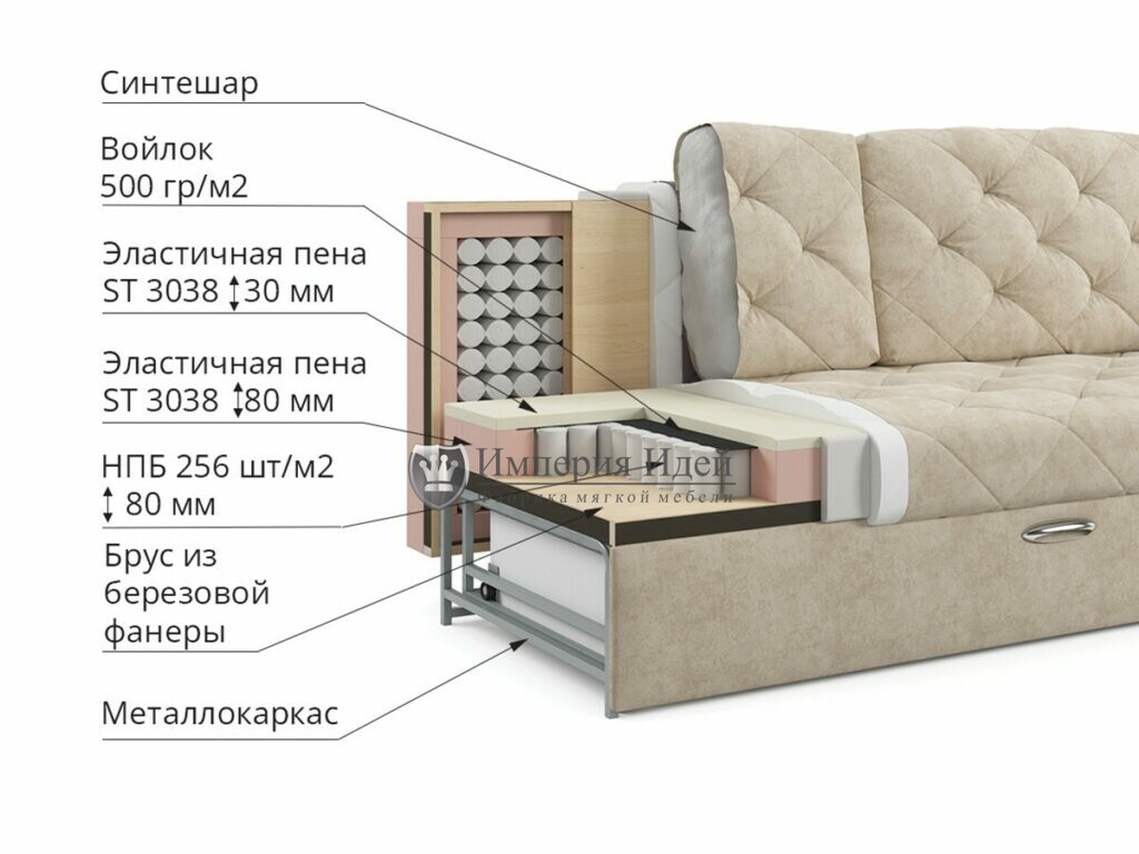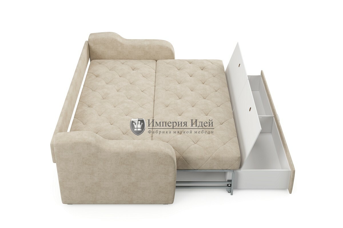 Модель «Бостон» является классическим представителем стиля модерн, об этом говорят строгие линии, элегантные изгибы подлокотников и глубокая утяжка спинки. Диван «Бостон» не только стильно выглядит, он отличается отменной функциональностью. Днем это удобное место для отдыха, а ночью — комфортная двуспальная кровать с мягким эластичным полиуретановым наполнителем, который гарантирует крепкий и здоровый сон. Для удобства хранения постельных принадлежностей предусмотрена просторная ниша в основании дивана, доступ к которой открывается в процессе его трансформации.