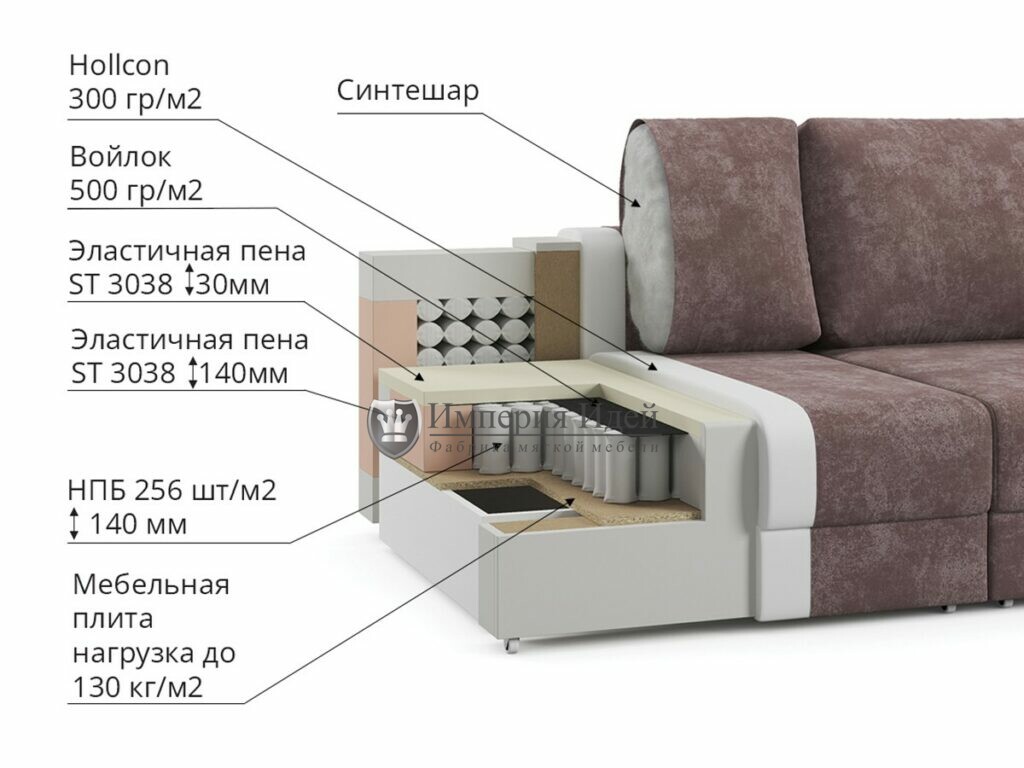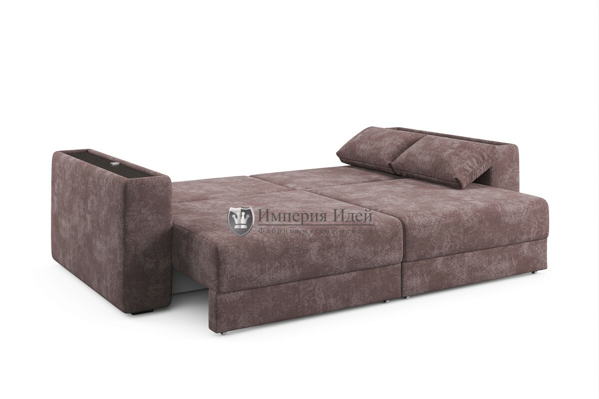 Диван «Брабус» — образец стиля и функциональности. Привлекательный внешний вид, строгие прямоугольные формы и массивные элементы созданы, чтобы подчеркнуть интерьер. Широкие подлокотники являются не только частью дизайна. Под деревянными вставками расположены достаточно вместительные ниши для хранения различных вещей. Диван обеспечивает не только комфортный отдых днем, но и крепкий сон ночью. Для этого предусмотрен простой и надежный механизм трансформации «Еврософа», благодаря которому получается просторное ровное спальное место.