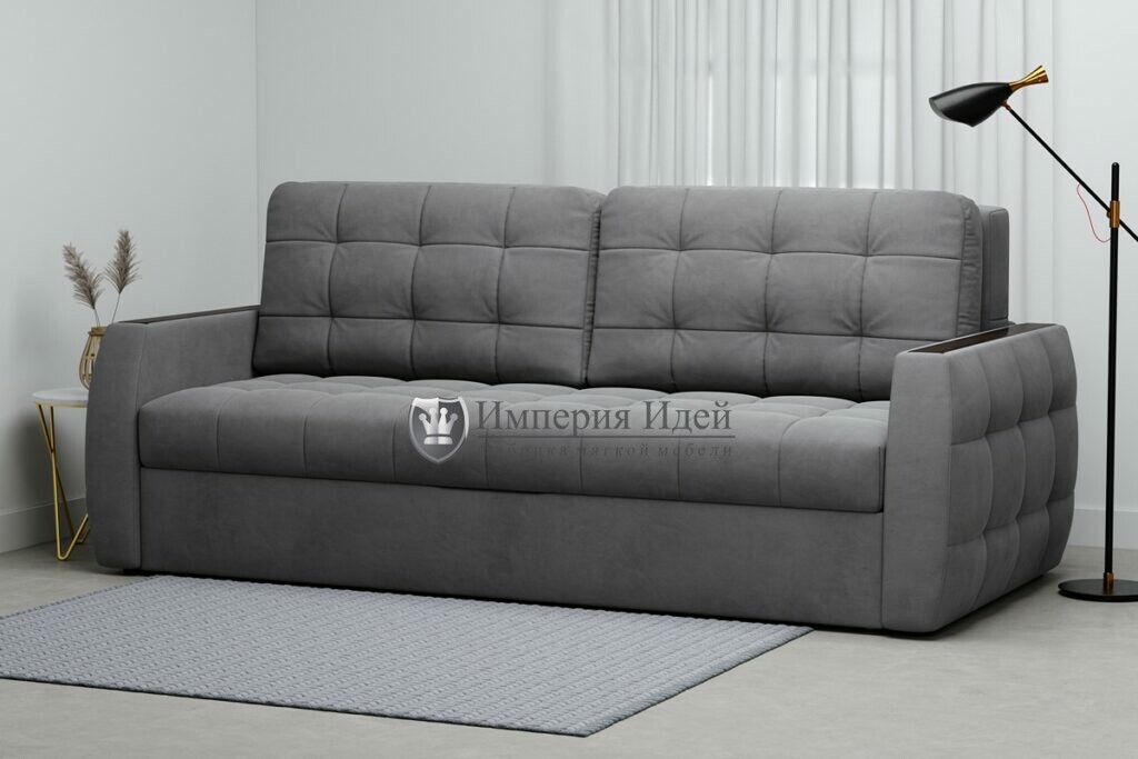 Диван «Брукс» — яркая и стильная модель, которой подходят не менее яркие цвета. Отличительной особенностью мягкой мебели этой модели является утяжка не только спинки и сидения дивана, но и боковин с деревянными подлокотниками. Дизайнеры потрудились, чтобы объединить одновременно и классику, и современный модерн. Внешний вид не единственный «плюс». Диван легкими движениями трансформируется в комфортную кровать.