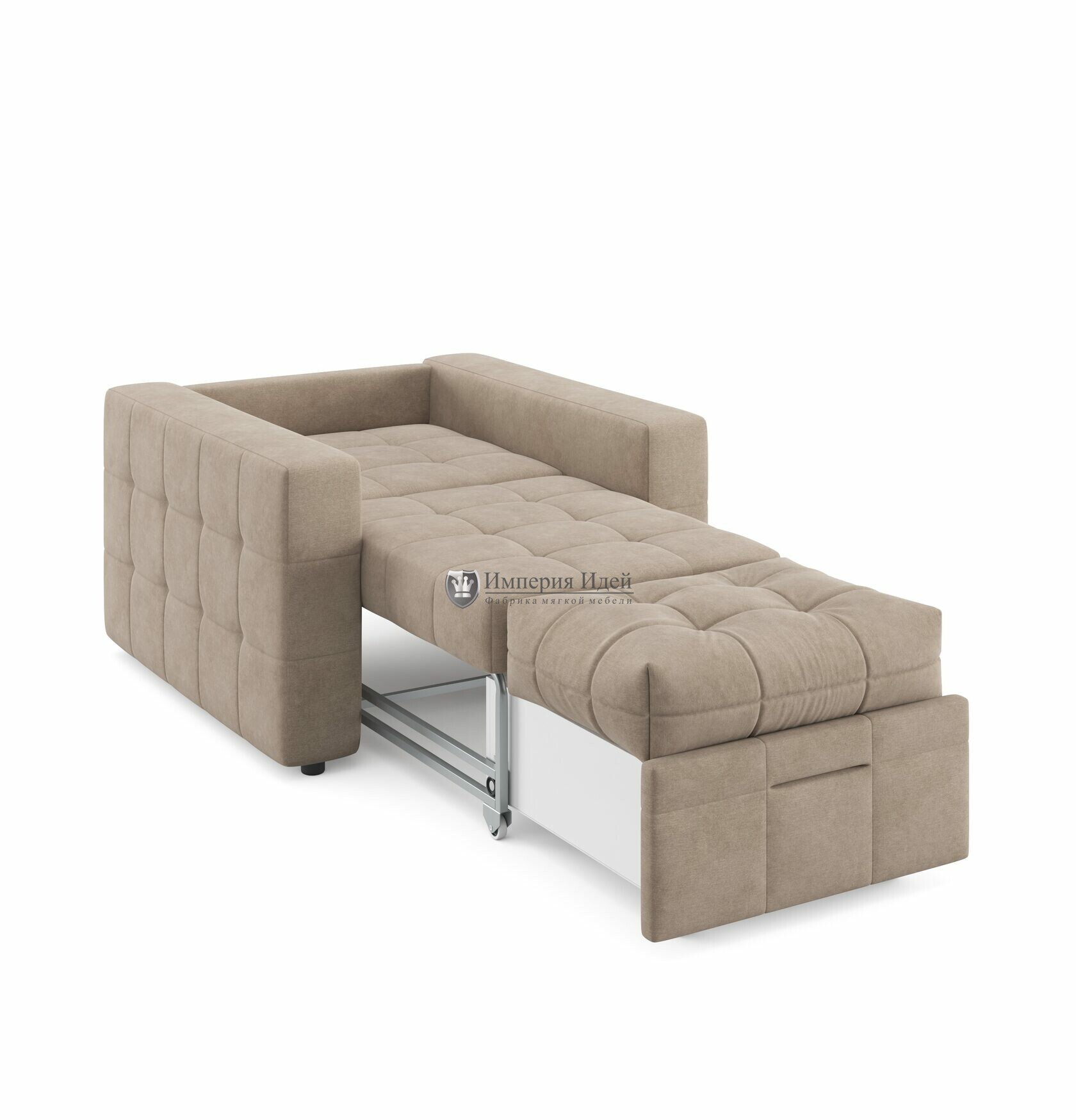 Длина: 106 см Глубина: 100 см Спальное место: 70*200 см Механизм: выкатной двухпозиционный металлокаркас Ящик для белья